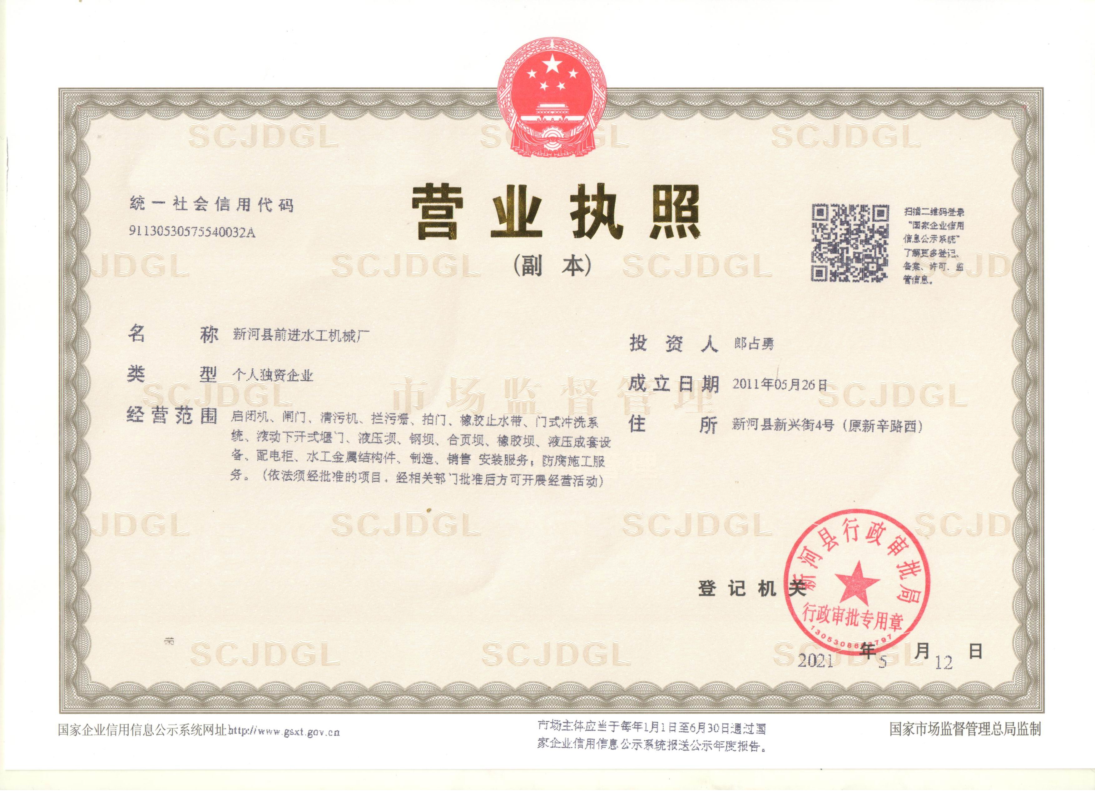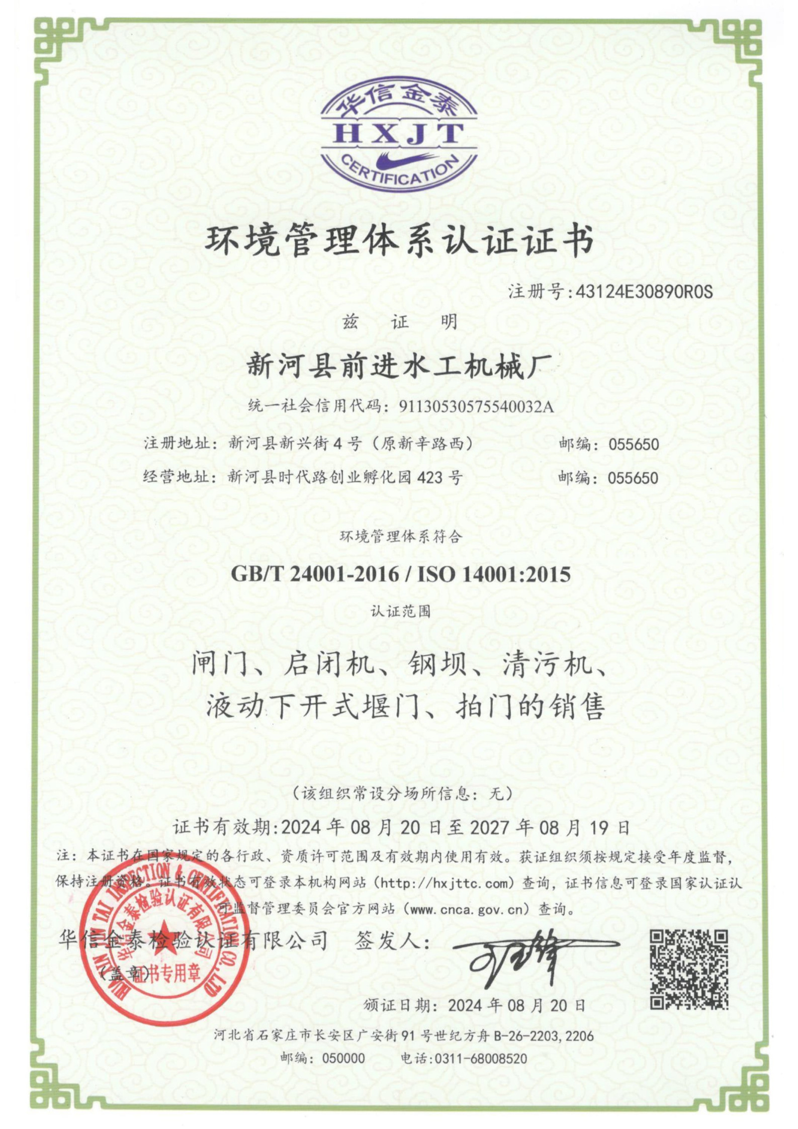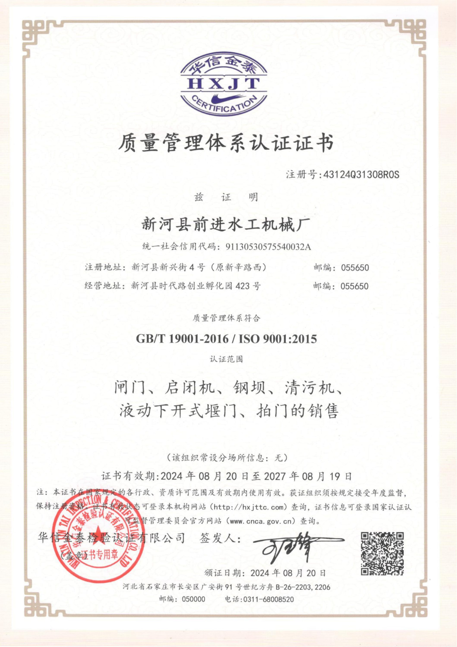 新河縣前進水工機械廠是一家專門從事水利工程設備研發(fā)生產(chǎn)的廠家,現(xiàn)有員工228人,各類高、中級專業(yè)工程技術(shù)人員近30人,技術(shù)生產(chǎn)工人180多人。公司占地面積14674平方米。公司擁有車、鉗、刨、銑、冷作、鈑金、鑄造等,工種齊全,加工能力和技術(shù)力量雄厚,并具備理化測試手段與儀器設備。前進水工專注景觀閘門,鋼壩,合頁壩,液壓升降壩,液壓閘門,臥倒門,一字門,人字門,液壓啟閉機,卷揚啟閉機,螺桿啟閉機,清污機,除污機,閘門,拍門等設備的研發(fā)與生產(chǎn),是新河水利工程產(chǎn)品行業(yè)的領(lǐng)跑者,不僅在同行業(yè)群中揭起了一次又一次的技術(shù)革新,更為水利工程企業(yè)提供了更高更大的選擇平臺。